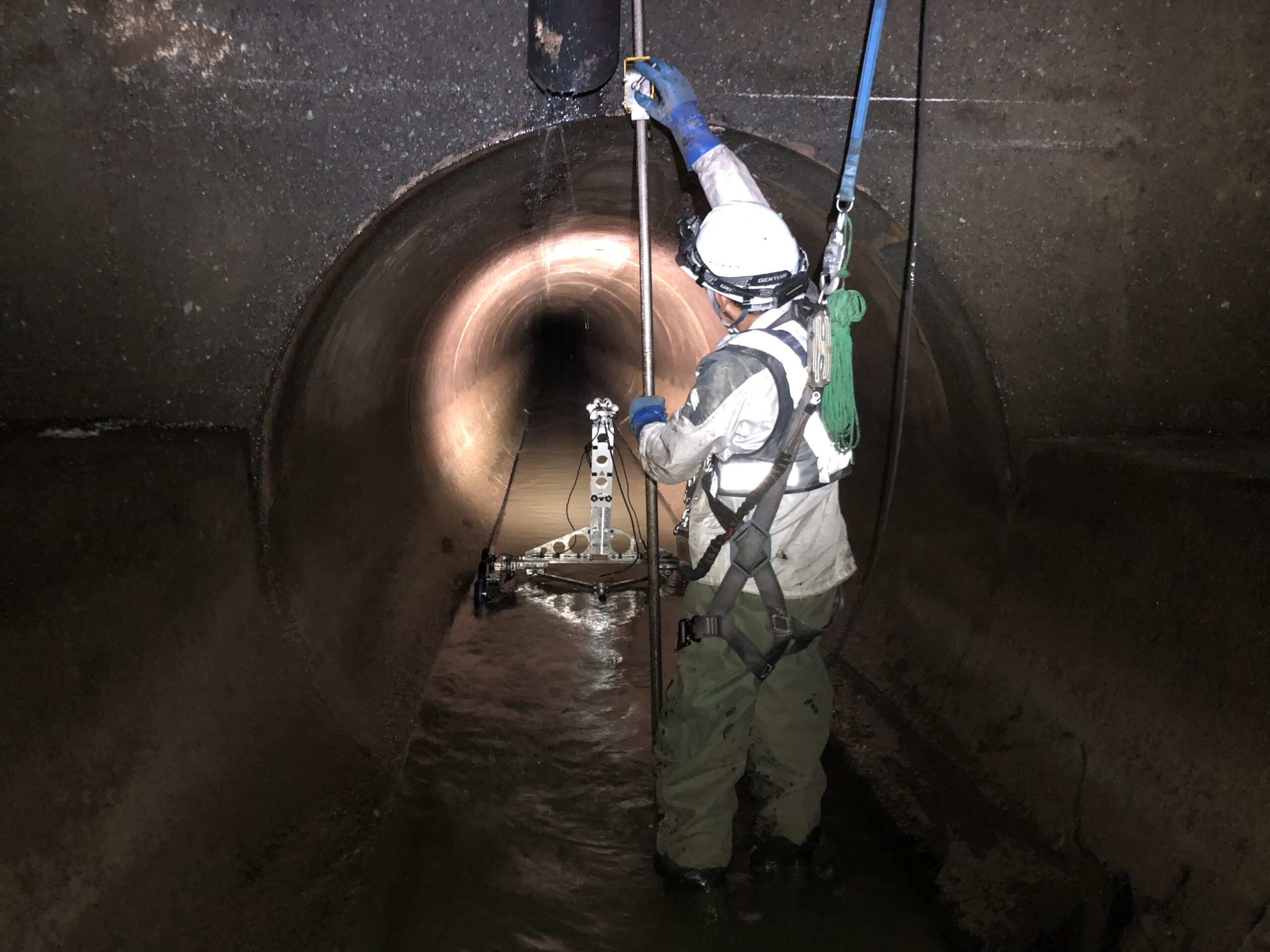 弊社では管径150㎜~3000㎜の直視・側視式までを1台、管径150㎜~450㎜の直視・側視式までを1台の合計2台保有しています。また、調査は下水道管路管理専門技士(調査)の資格を保有した社員が多数在籍しているため、資格者がオペレーターとして正確な調査を実施し、活躍しています。