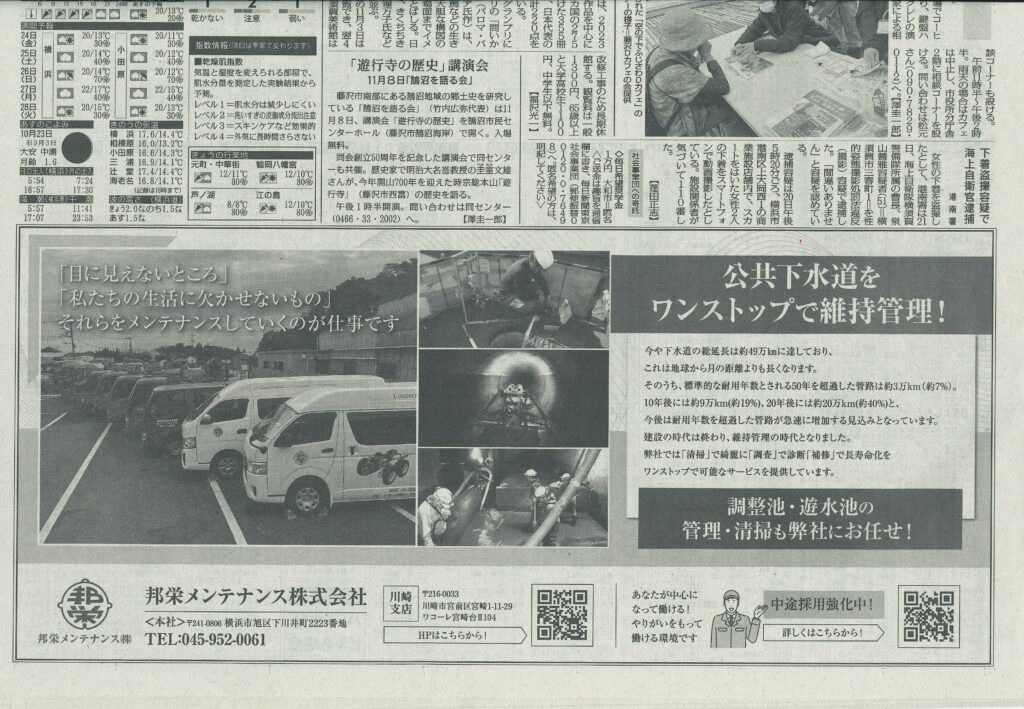 毎日新聞に弊社の公告が掲載されました 投稿日 2025年10月22日 著者 houei-mente カテゴリー NEWS 令和7年10月22日付(朝刊)の毎日新聞に、弊社の公告が掲載されました。これを機に、より多くの皆さまに弊社の取り組みを知っていただければ幸いです。 今後ともご支援のほどよろしくお願い申し上げます。